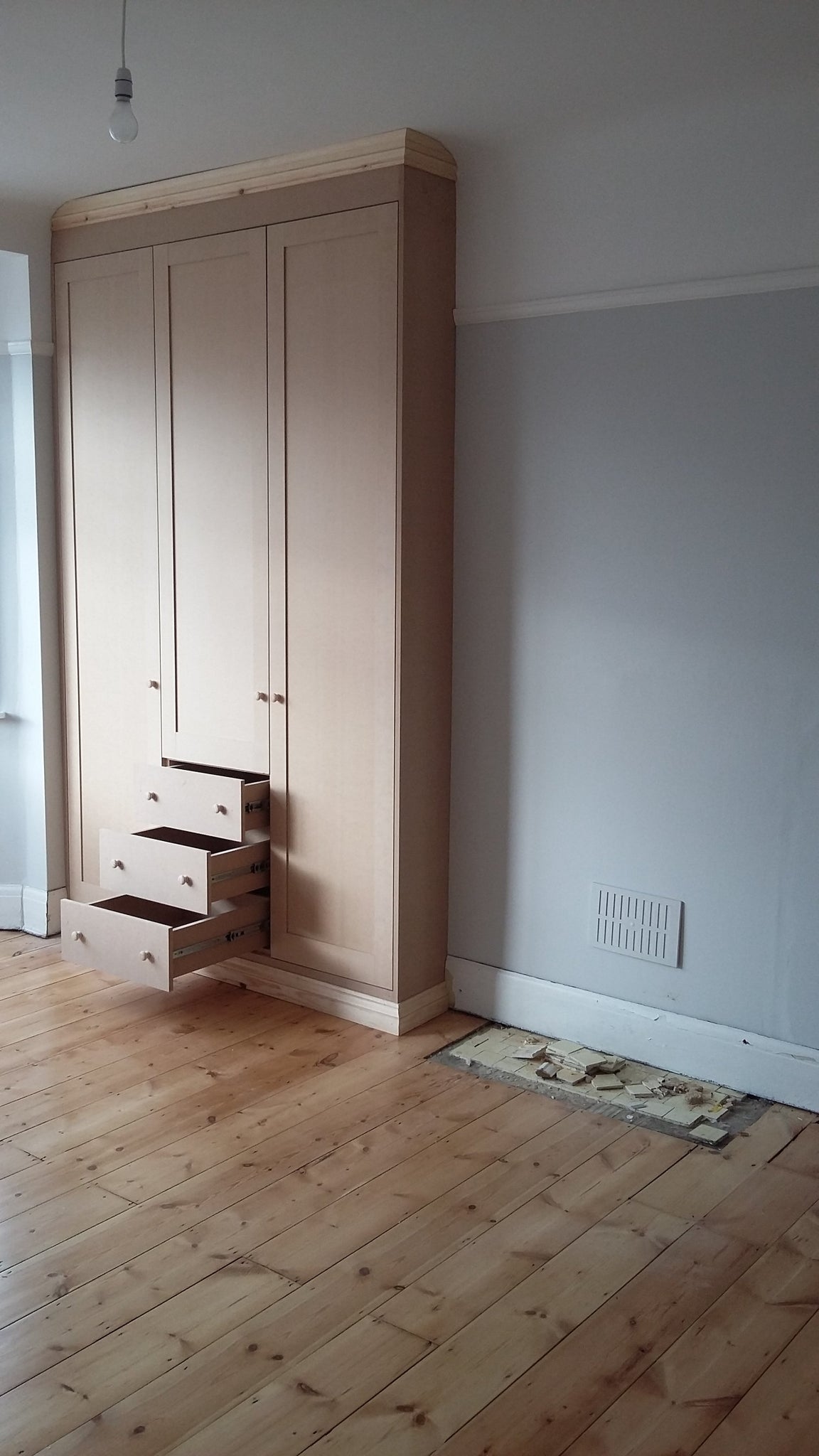 3 door wardrobe with drawer system, hard wearing bearing runners, plenty of storage and at around 240cm tall , its quite impressive