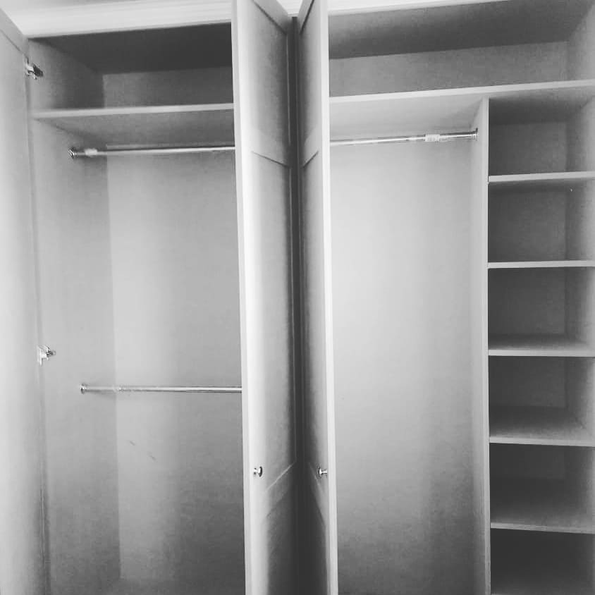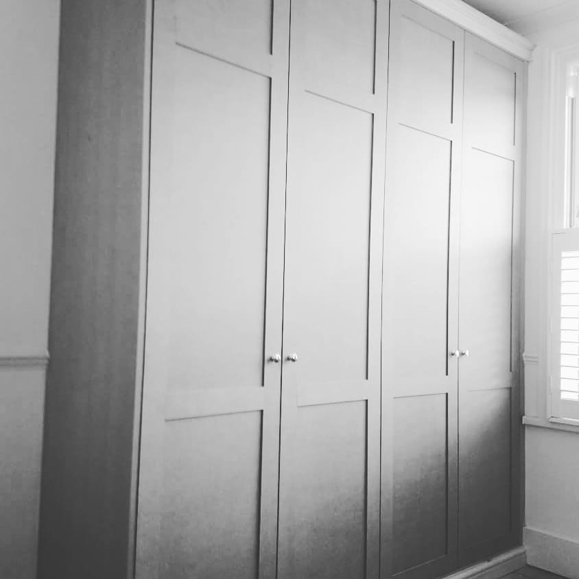 Fully fitted but unpainted wardrobes, approximately 240 cm high , 200 cm long and 60 cm deep